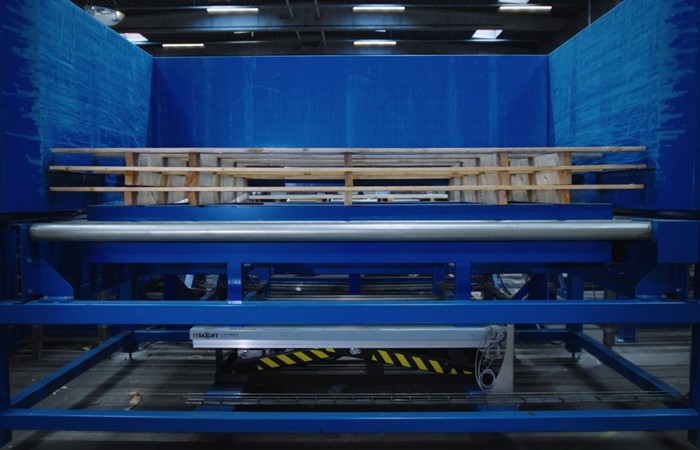 Formaterne er konfigurationsbare og projektspecifikke. I udgangen af linjen er der en strækfilm palle-omvikler, der sikrer pladernes beskyttelse og placering på pallen under transport og håndtering.