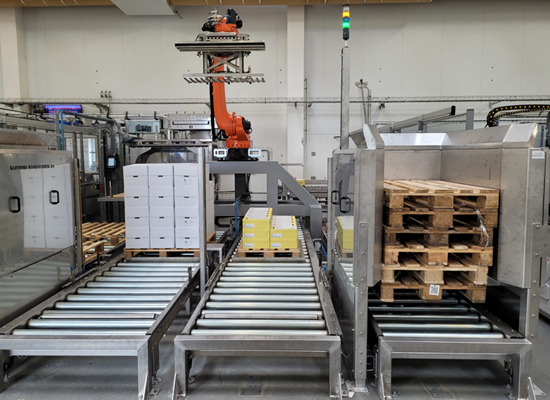 Vi leverer også ompakningslinjer, der gør det nemt at tilpasse emballagen til forskellige markeder eller kundebehov, hvilket øger fleksibiliteten i din forsyningskæde. Vores palleteringsanlæg er udviklet til automatisk stabling af produkter på paller, hvilket forbedrer lagerstyringen og reducerer arbejdskraftomkostninger.